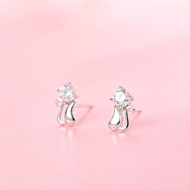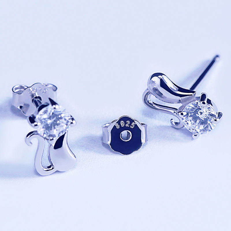 Model Number:OAE0063 of silver cat earring