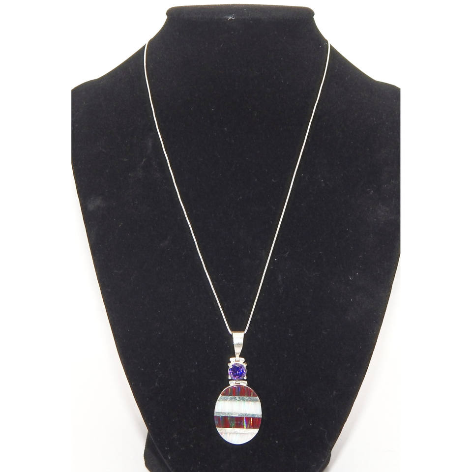 .925 Sterling Silver Chain with .950 Fine Silver Pendant with Amythest & Opal