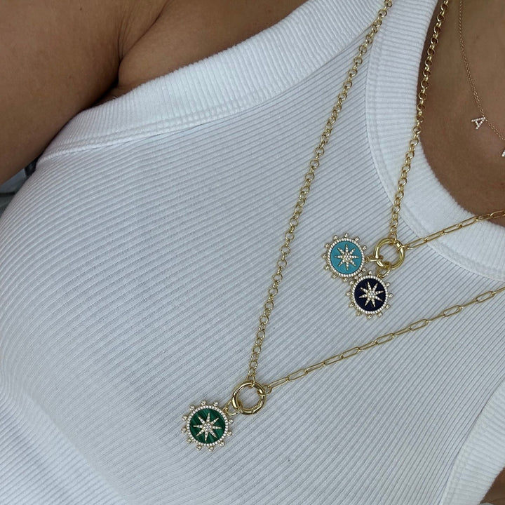 925 Sterling Silver Compass Pendant Necklace for Women Zircon MOP Turquoise Malachite Onyx Gold Plated Chains Jewelry