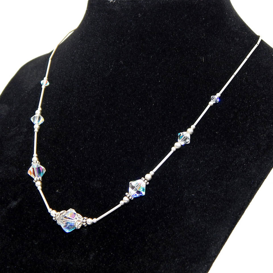 . 925 collana di perline di cristallo in argento Sterling