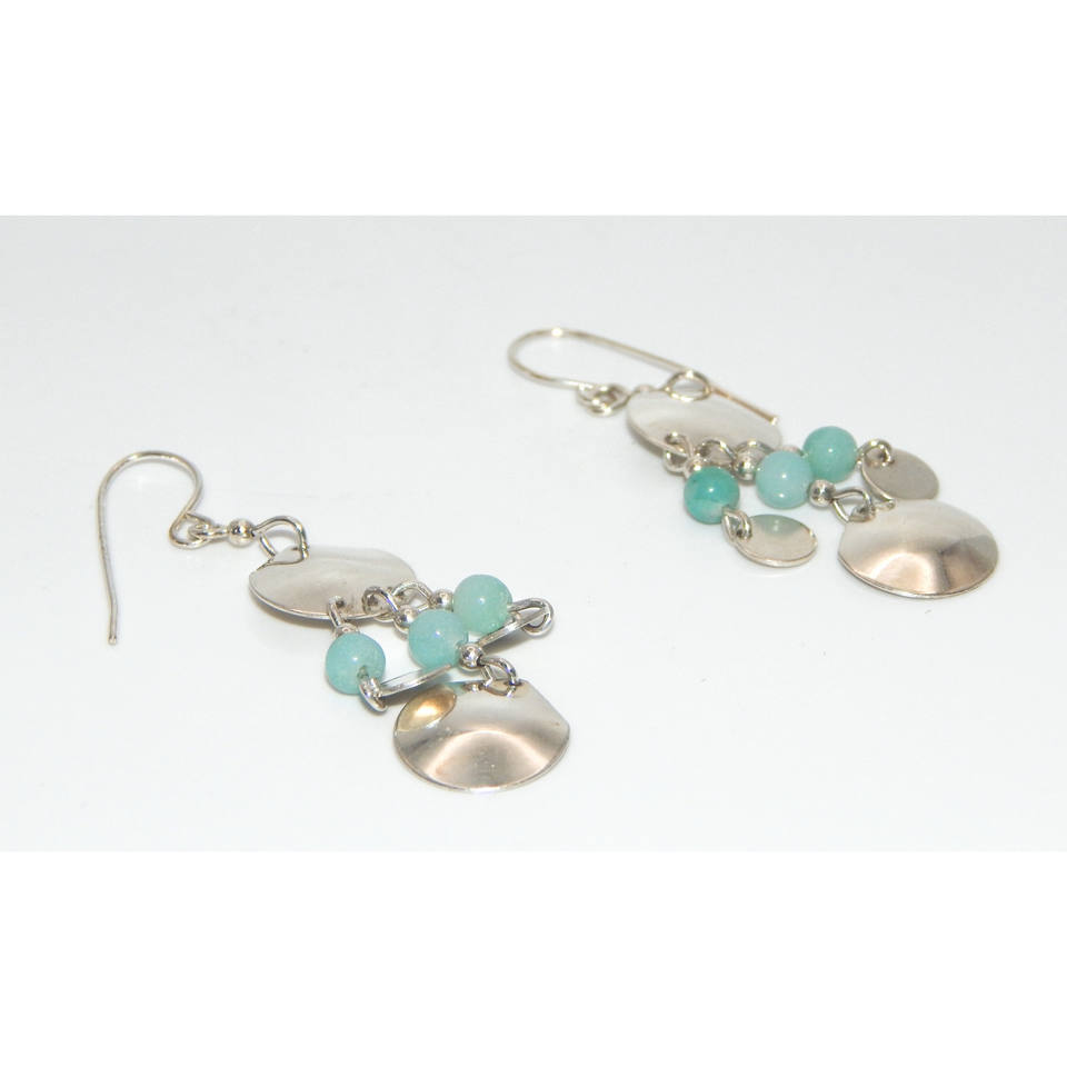 . 925 orecchini pendenti in argento Sterling con perle di giada Aqua e dischi d'argento