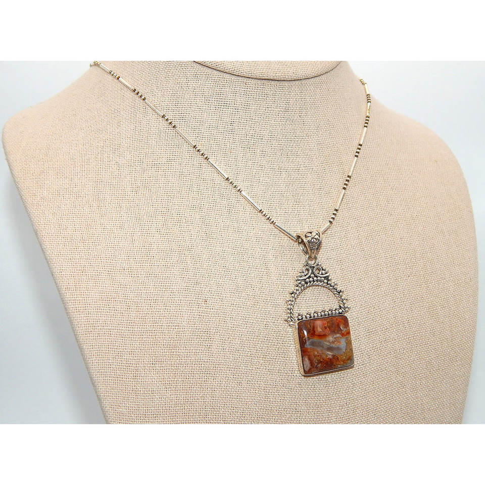 Catena decorativa in argento Sterling 925 con pendente in diaspro ornato