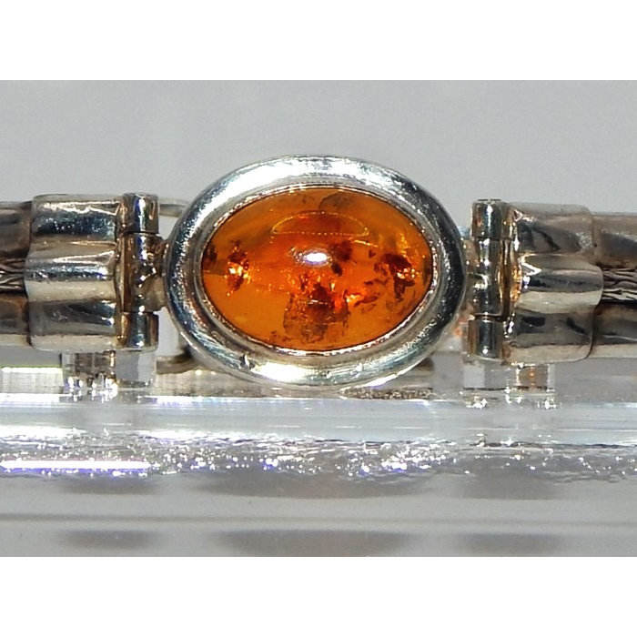 925 Sterling Silver Fashion Cuff for Bracelet with Amber Setting and Buckle Clasp