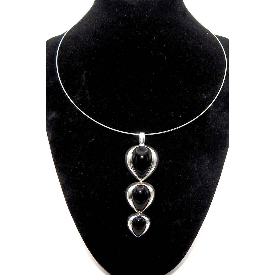 925 Sterling Silver Fine Choker Necklace with Black Onyx Elegant Collar Necklace