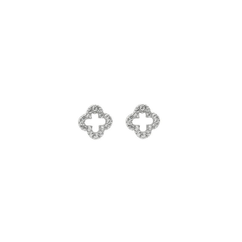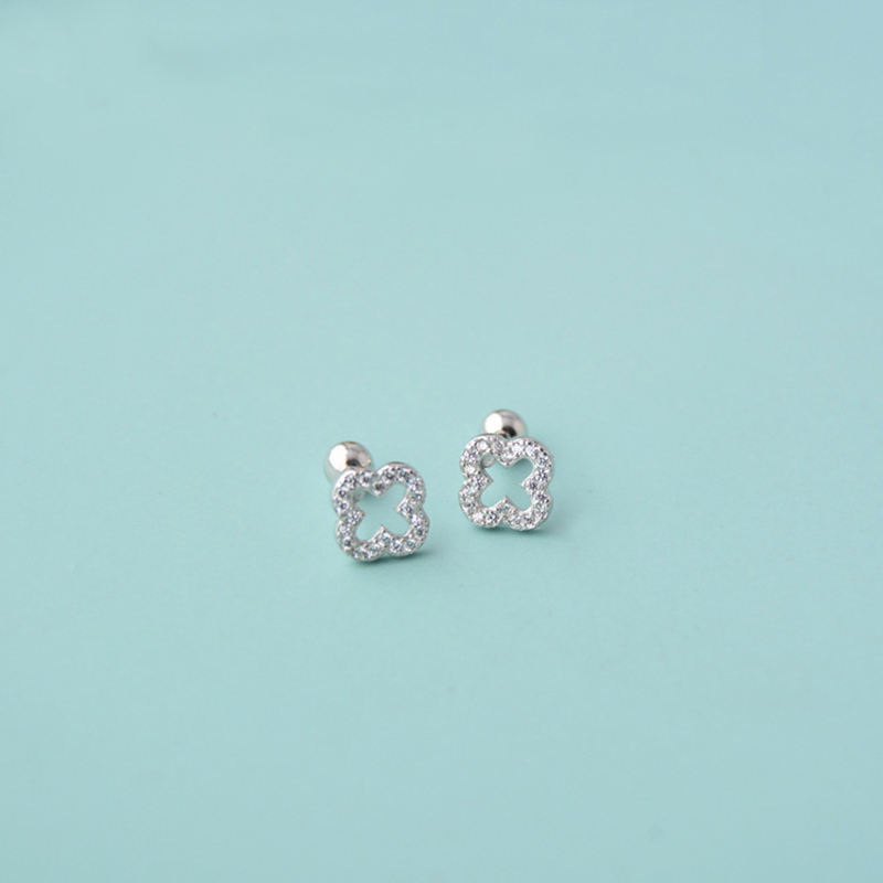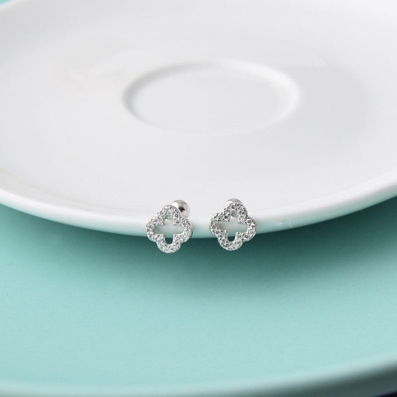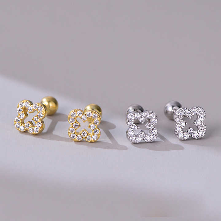 Orecchini a Lobo in Argento Sterling 925 di Alta Gioielleria, Placcati in Oro con Quadrifoglio, Piercing a Vite con Fiore Geometrico e Zircone Scintillante di Tendenza