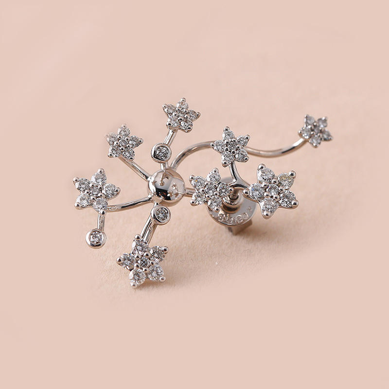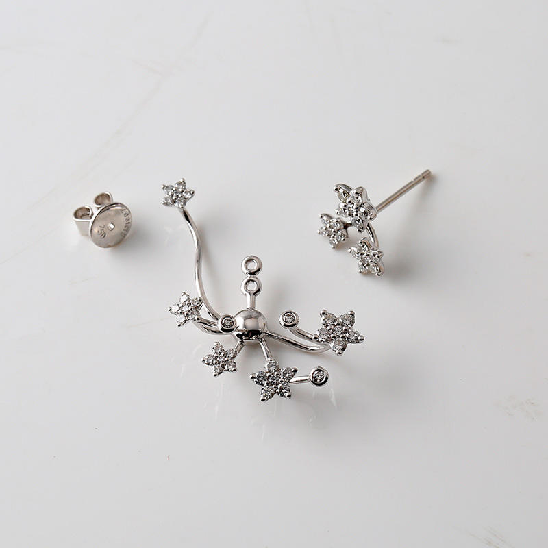 Orecchini a perno in Argento Sterling 925, di lusso, placcati Oro Rodio, con Moissanite e Zirconi, a forma di Fiori, avvolgenti per l'orecchio, Certificati, di Tendenza