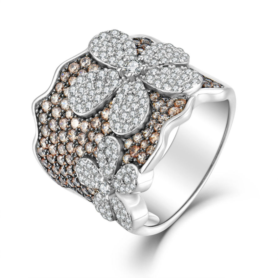 Anello di Design fiore in argento Sterling 925 con pietre CZ marroni e bianche per le donne-gioielli ipoallergenici per le dita sensibili