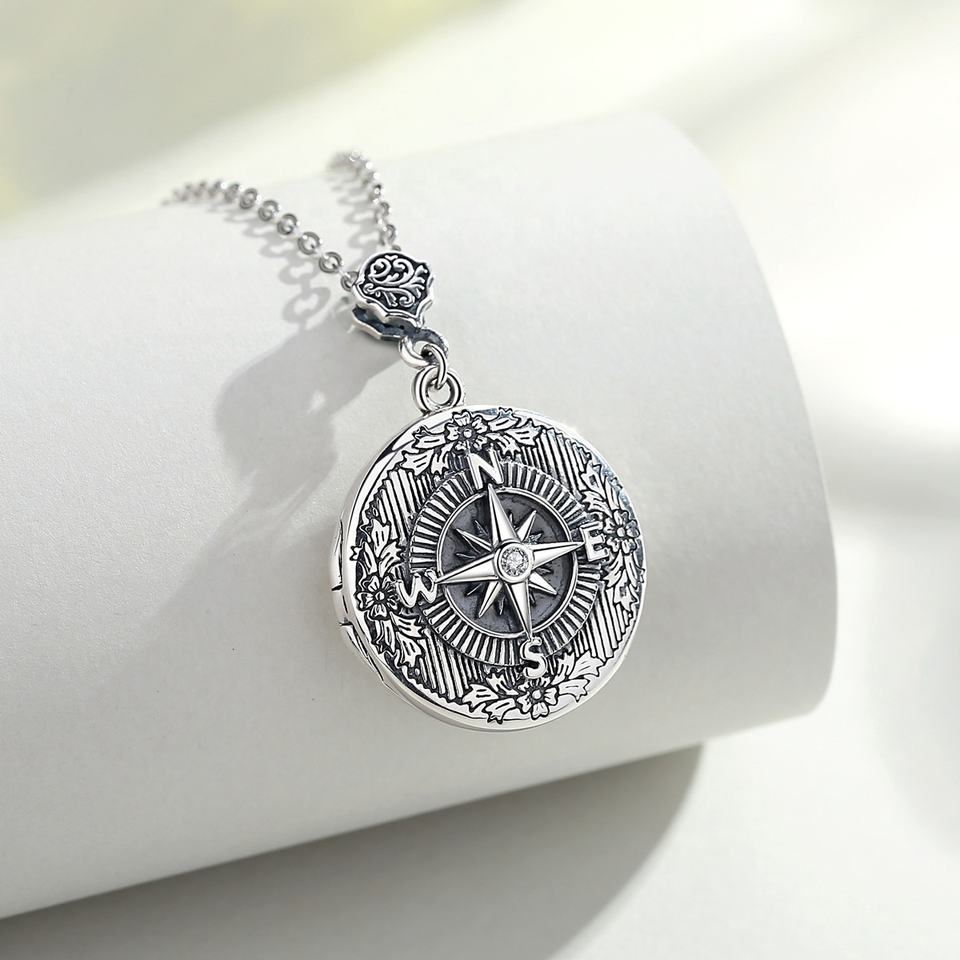 925 Sterling Silver Follow Your Dreams Compass Custom Diy Photo Locket Pendant