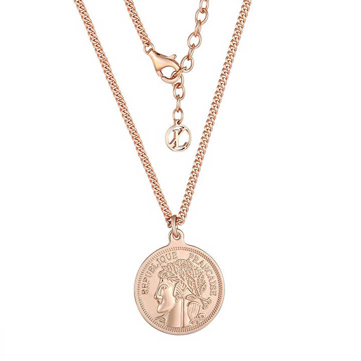 925 Sterling Silver French Republic Coin Necklace Rose Gold Plated Engraved Pendant K Letter Charm Women's Fashion Jewelry