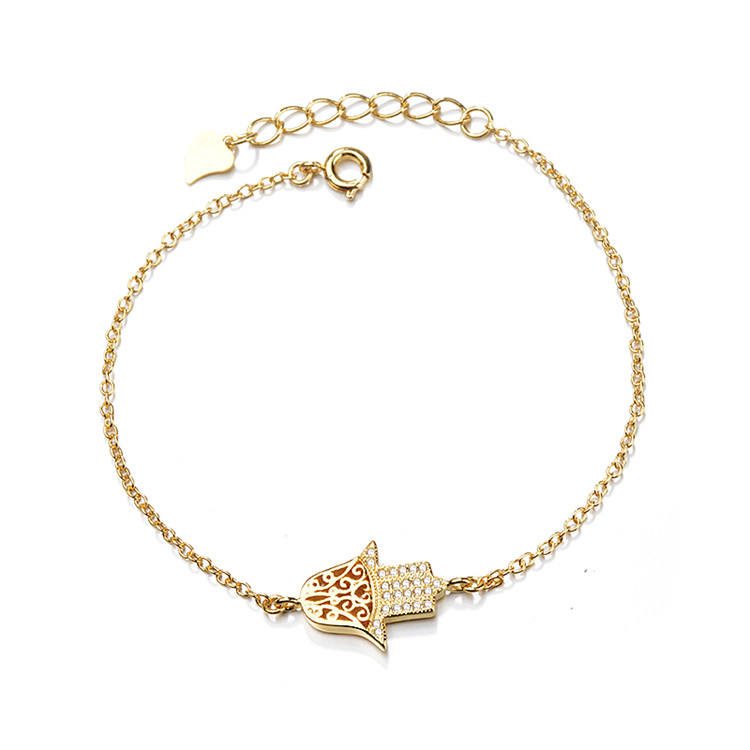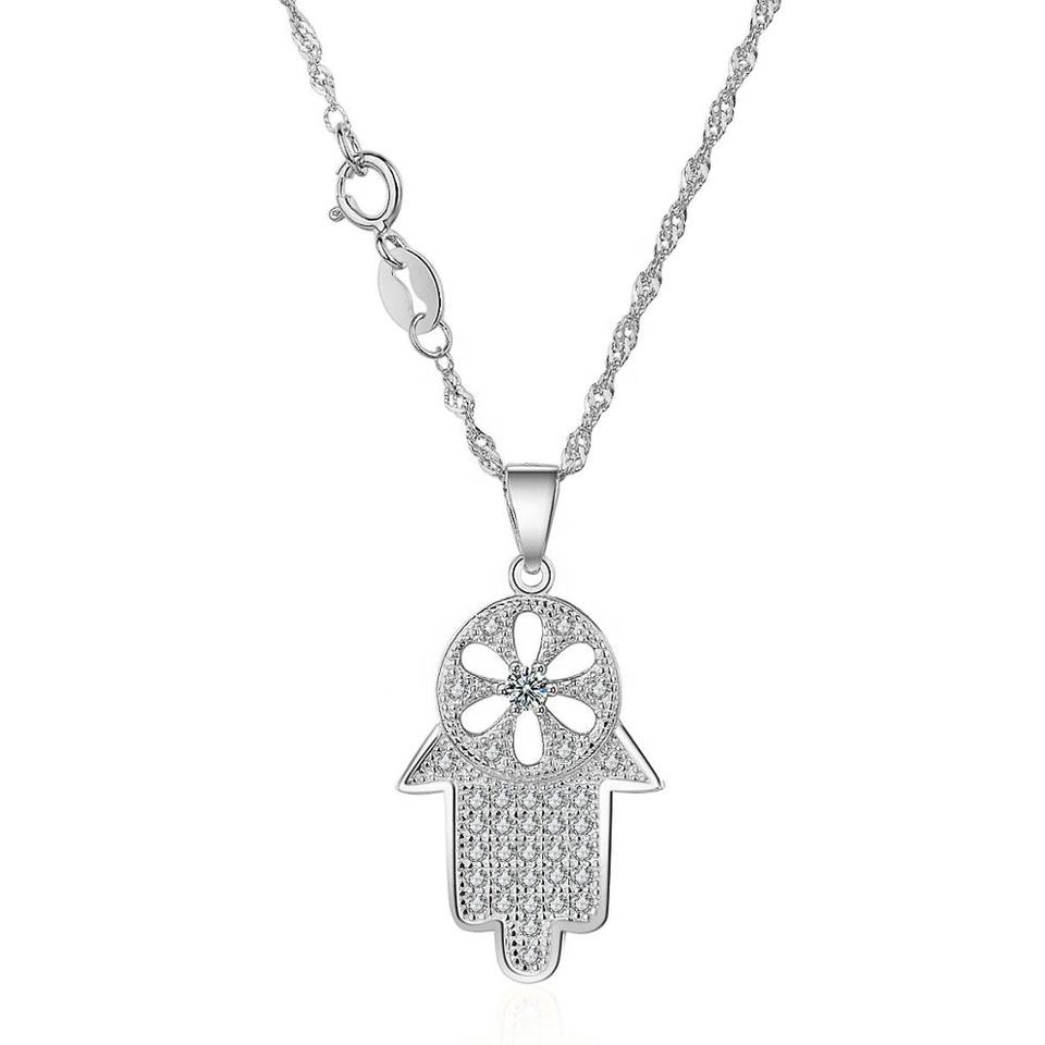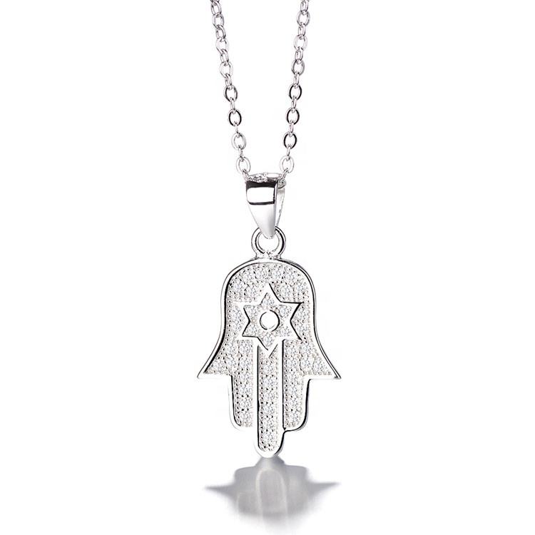 925 Sterling Silver Hamza Necklace Pendant Gold Plated Hand Necklace Jewelry for Girls
