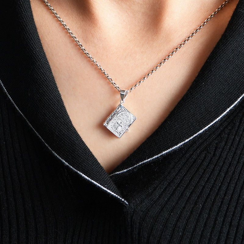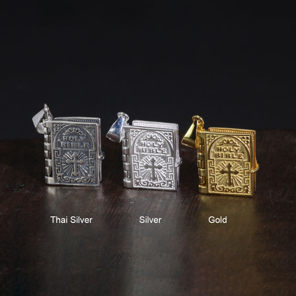 925 Sterling Silver Holy Bible Cross Pendant Necklace for Man and Women Book Type Carving Engraved Lord's Prayer English Letters