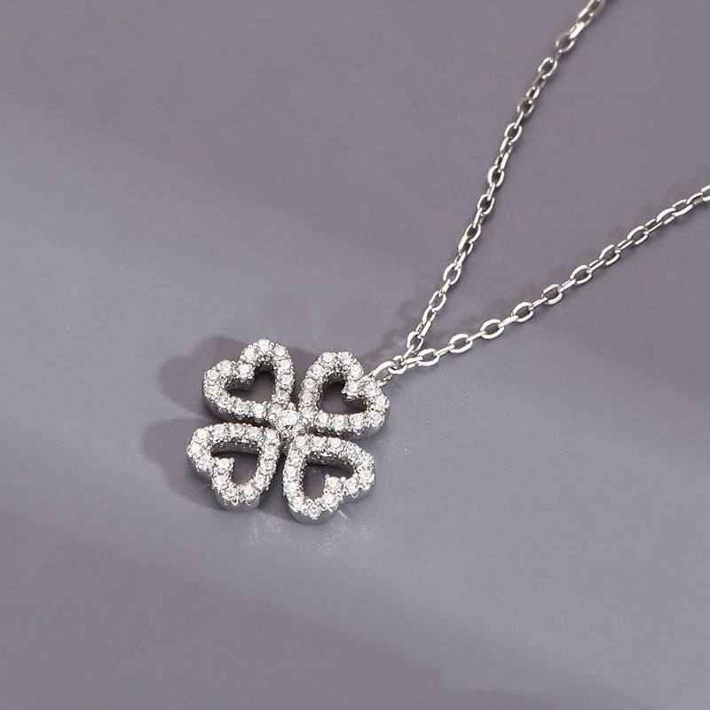 Collana Portafortuna con Quadrifoglio in Argento Sterling 925 per Donna di Tendenza Europa e America, Collana di Alta Gioielleria con Zirconi