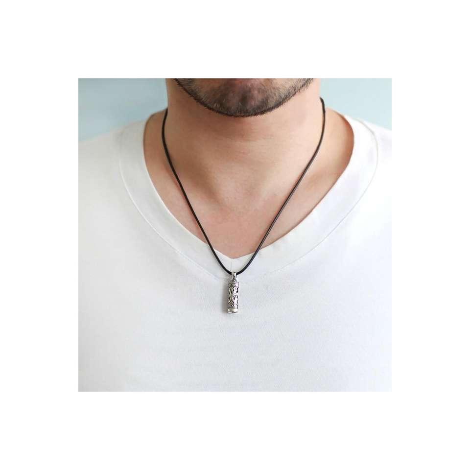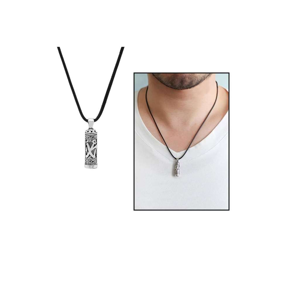 925 Sterling Silver Men's Cevşen Necklace with Arabic "muhammed" Written Rope Chain