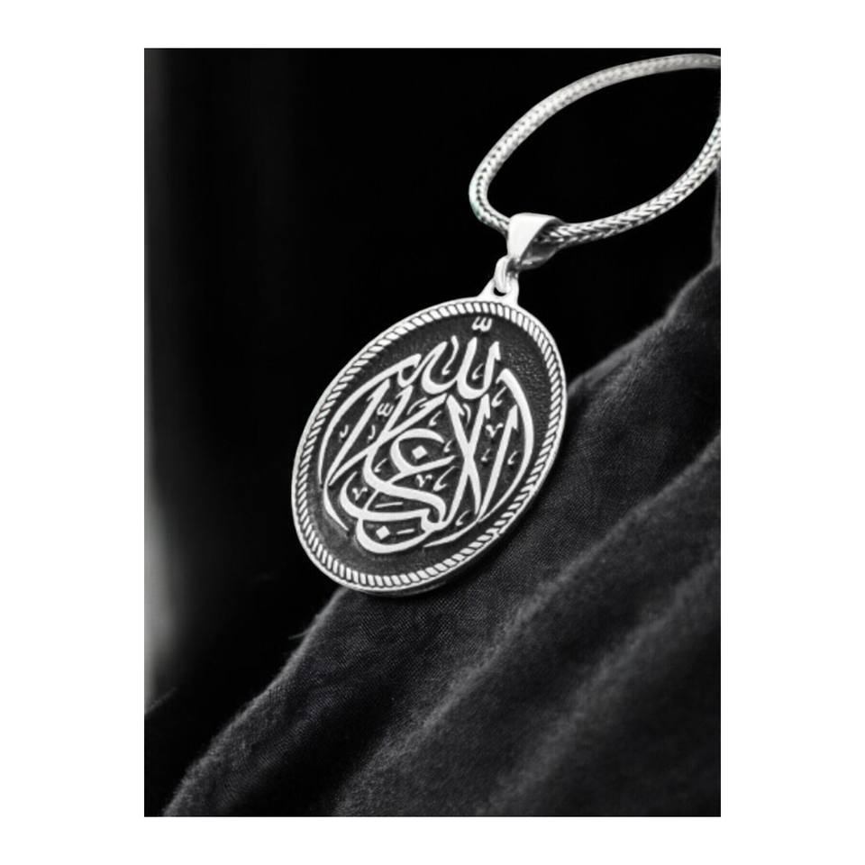925 Sterling Silver Men's Necklace with "La Galibe Illallah" (There is no victor but Allah) inscription.