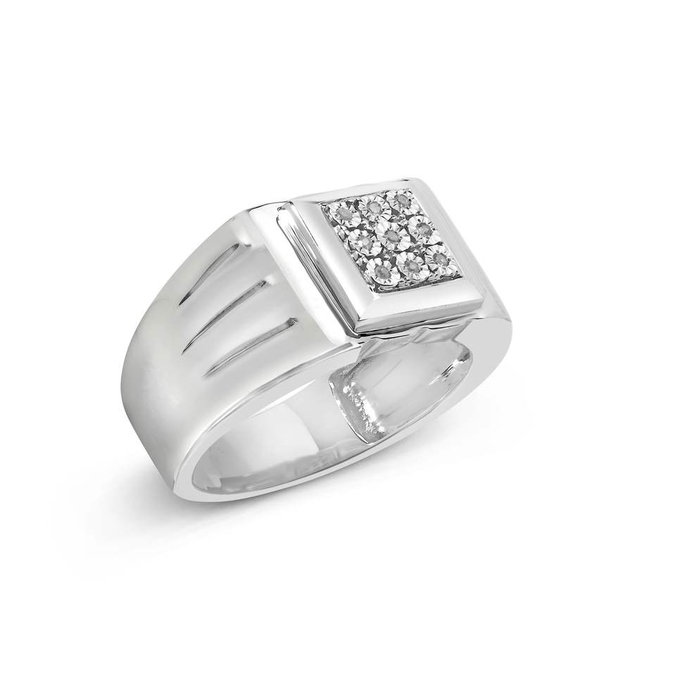 Anello da Uomo in Argento Sterling 925 con 9 Pietre Incastonate a Miracolo e Accento di Diamante, Colore I-J, Purezza I3, Fascia Scanalata