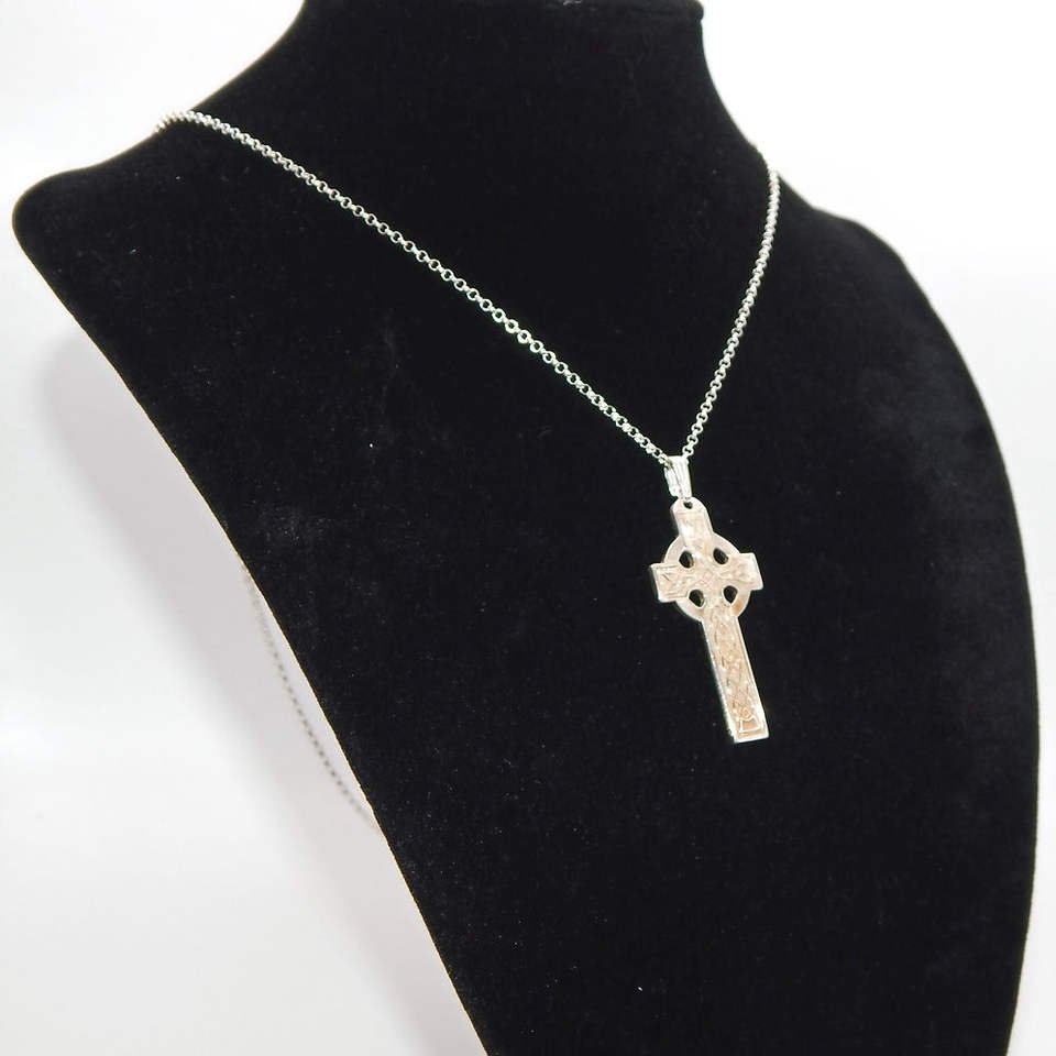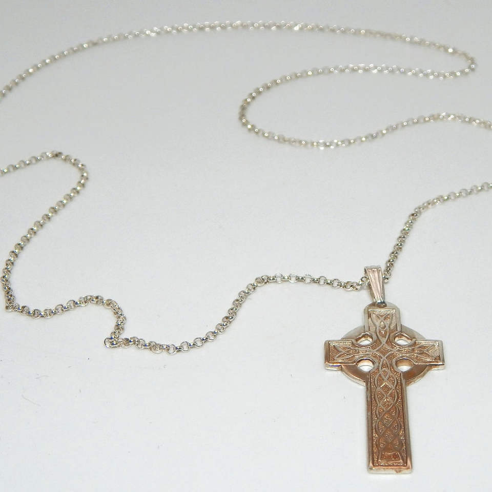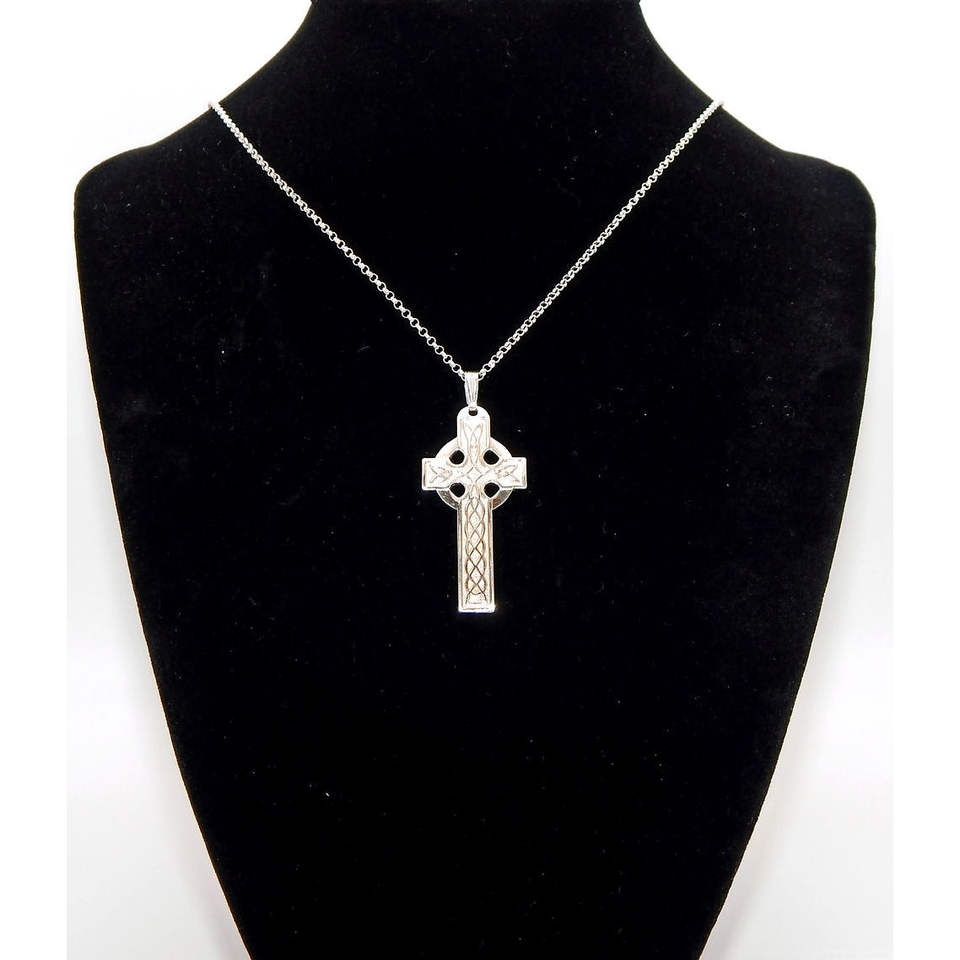 .925 Sterling Silver Necklace with Celtic Cross Pendant Gold Plated Freshwater Pearl Geometric Religious Style