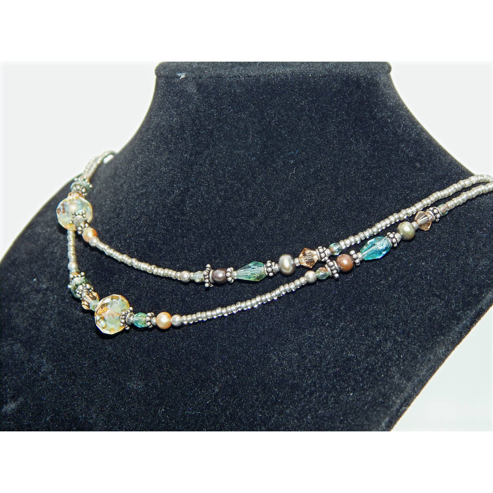 .925 Sterling Silver Necklace with Hematite, Peridot, Quartz, and Glass Beads