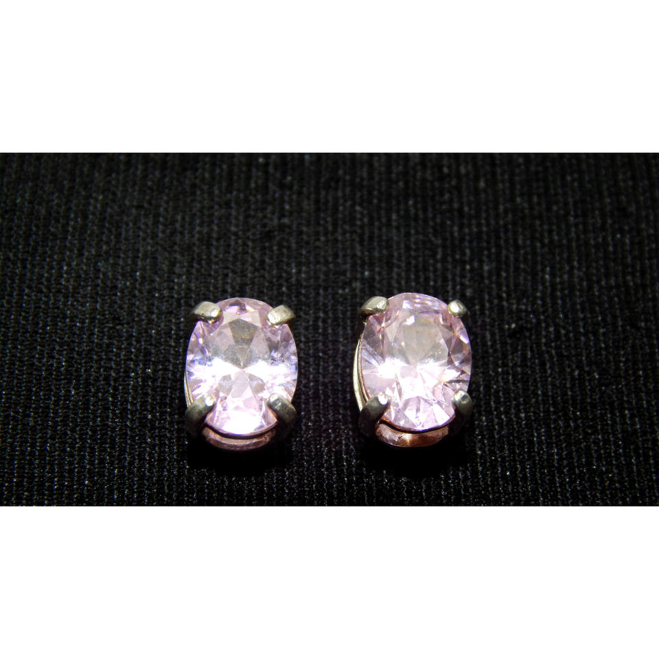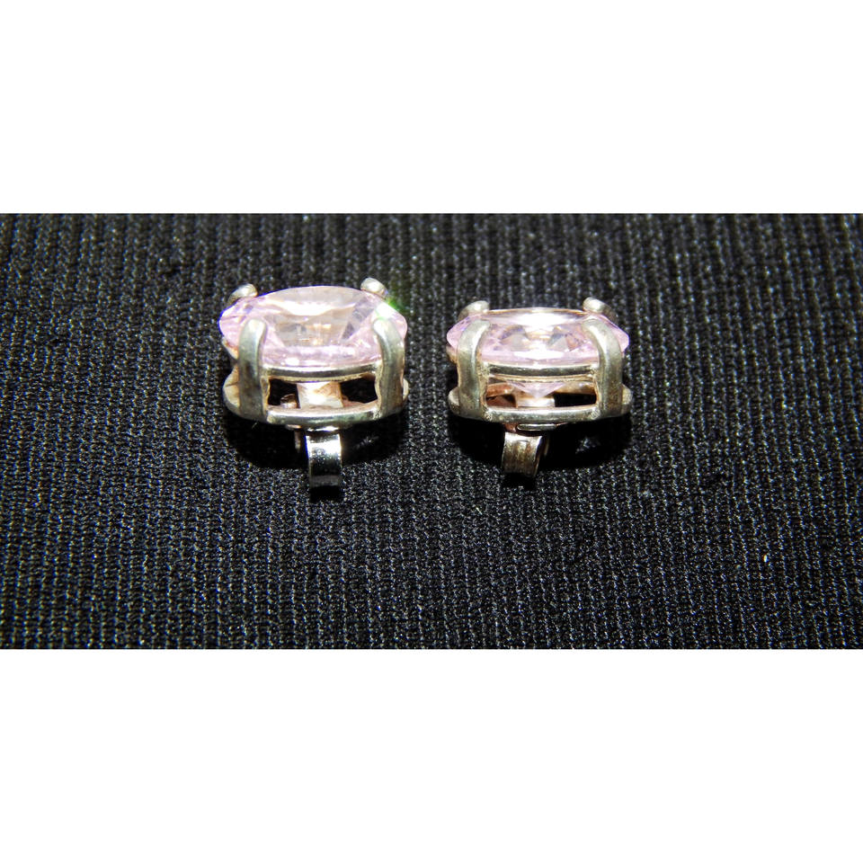 . 925 Sterling Silver & Pink Zircon Stud Earrings