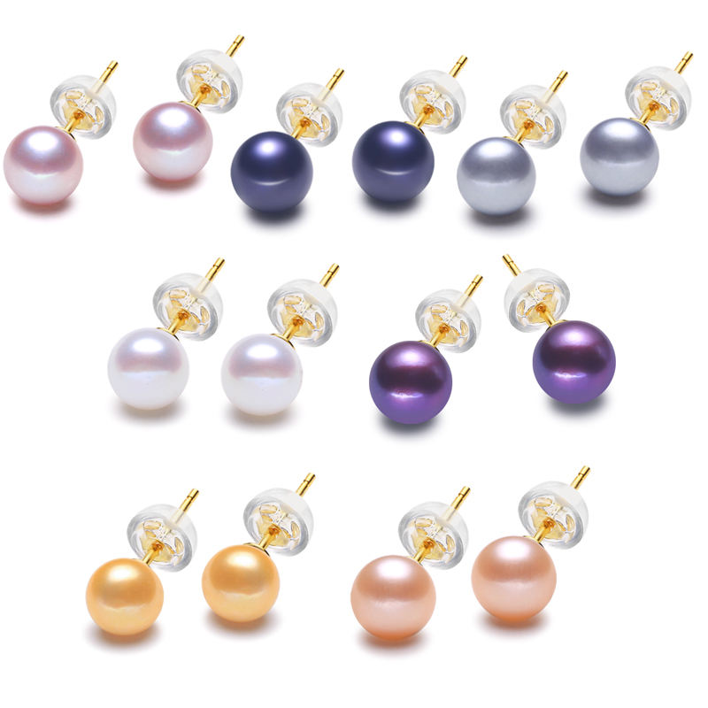 925 Sterling Silver Real Freshwater Pearl Earrings Button Shape Multicolor Pearl Stud Earrings Women