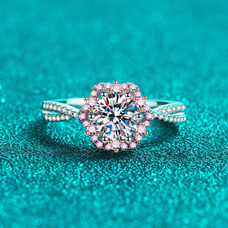 Anello in Argento Sterling 925 per Donne, Fiore di Prugna in Moissanite Placcato Oro Pt950, Rosa, Disponibile in Fabbrica per Vendita all'Ingrosso