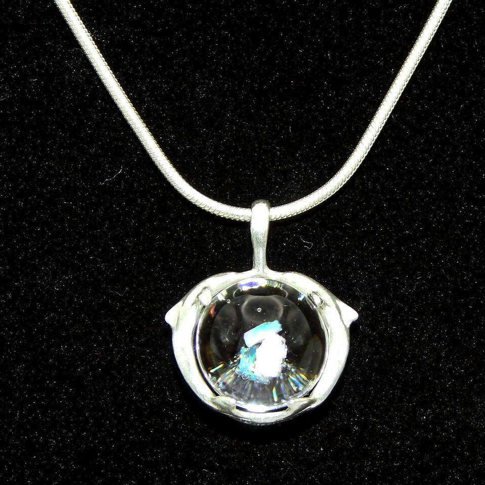 Collana con cavo liscio in argento Sterling 925 con ciondolo in cristallo e delfino