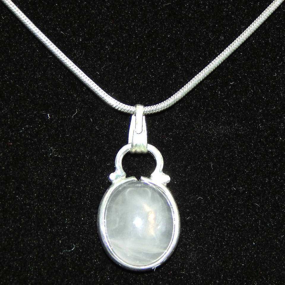 Catena di serpente liscia in argento Sterling 925 con quarzo bianco latte ovale
