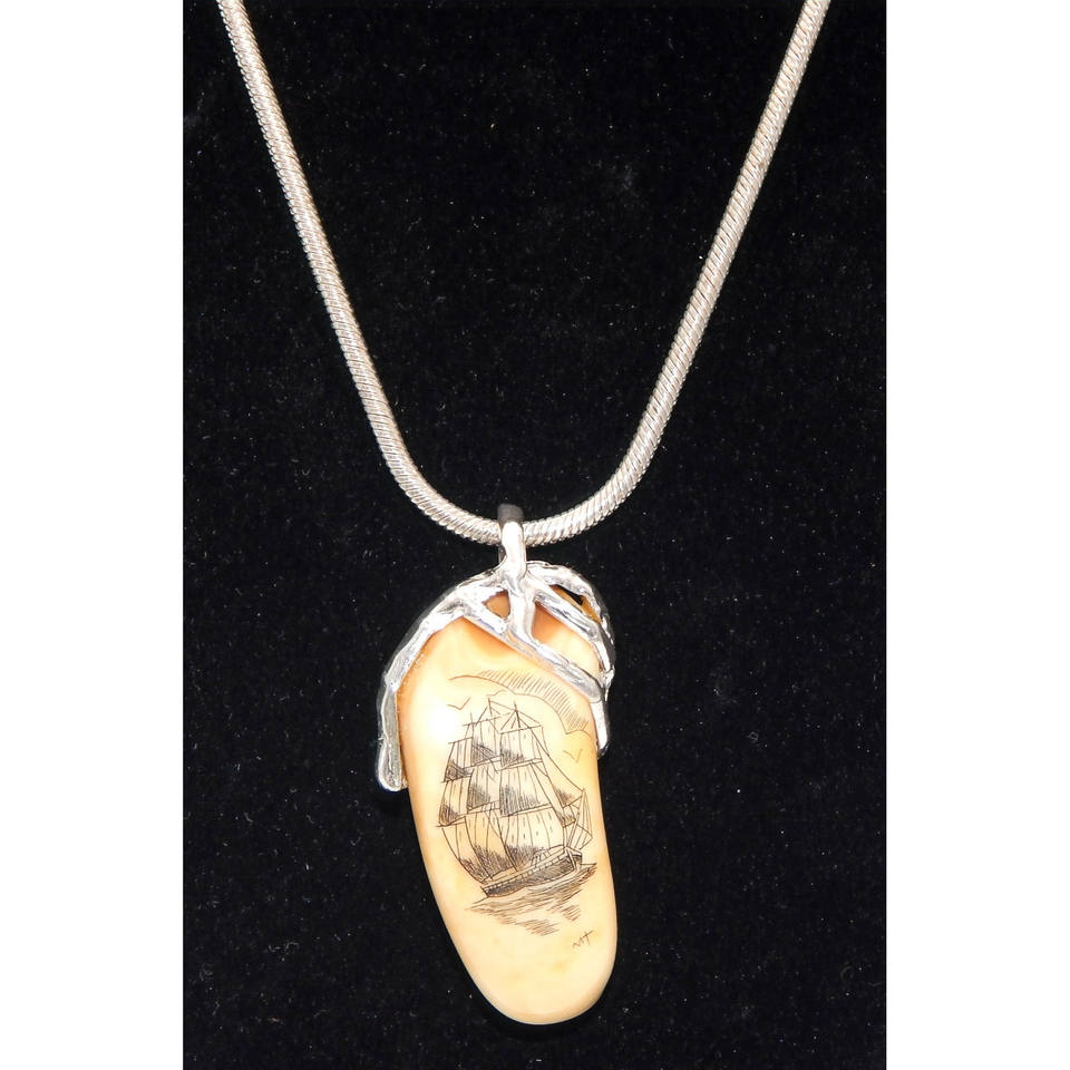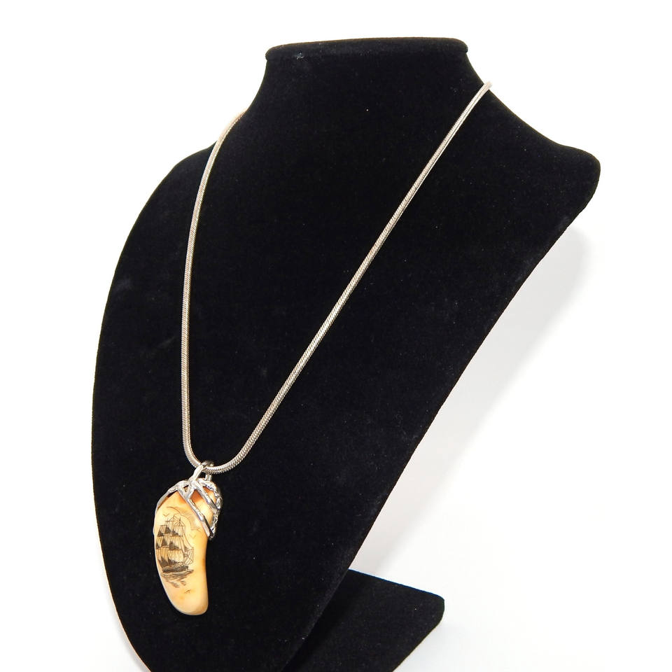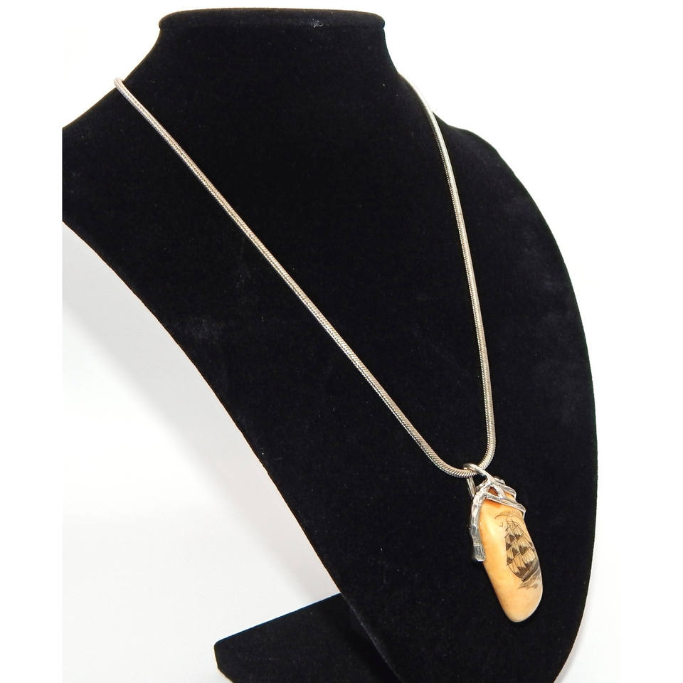 Catena di serpente in argento Sterling 925 con bellissimo ciondolo Scrimshaw della nave
