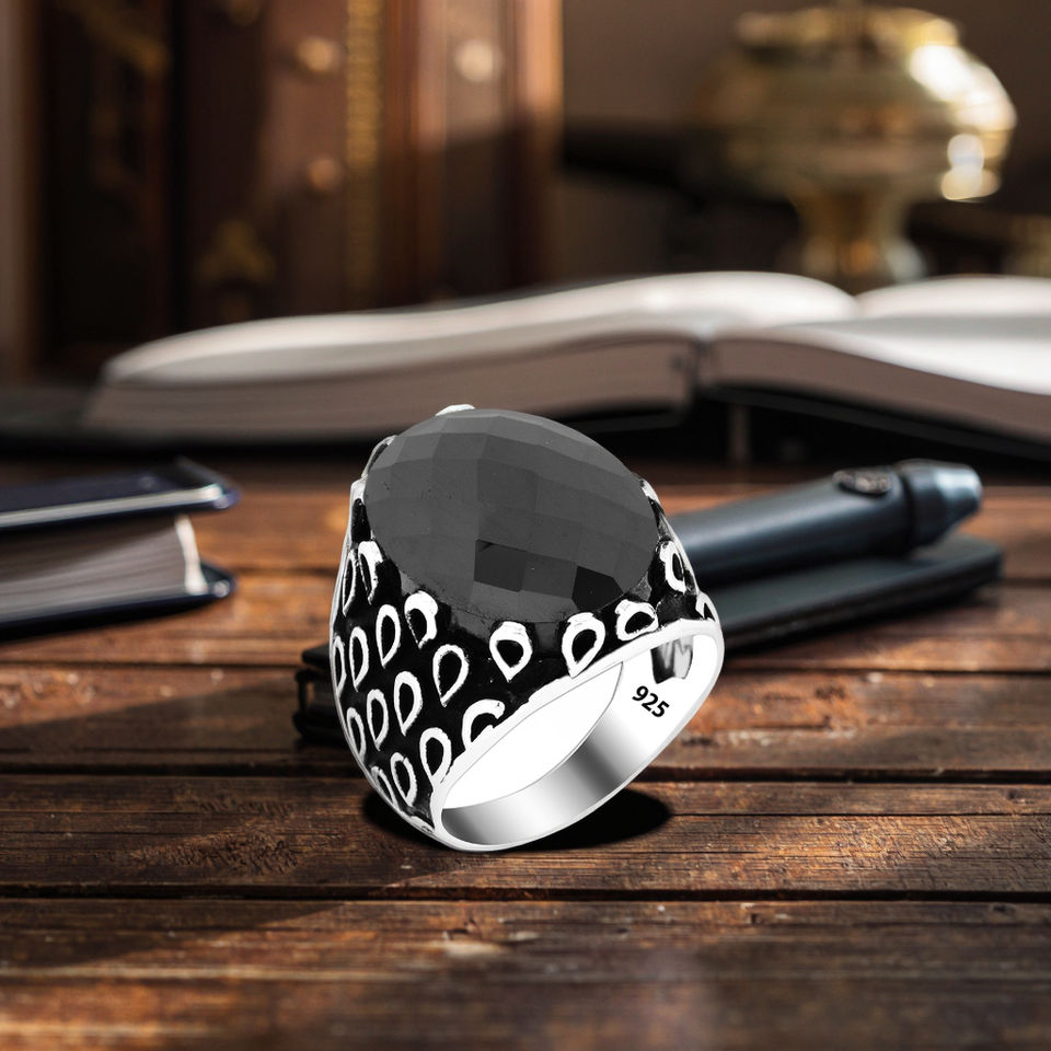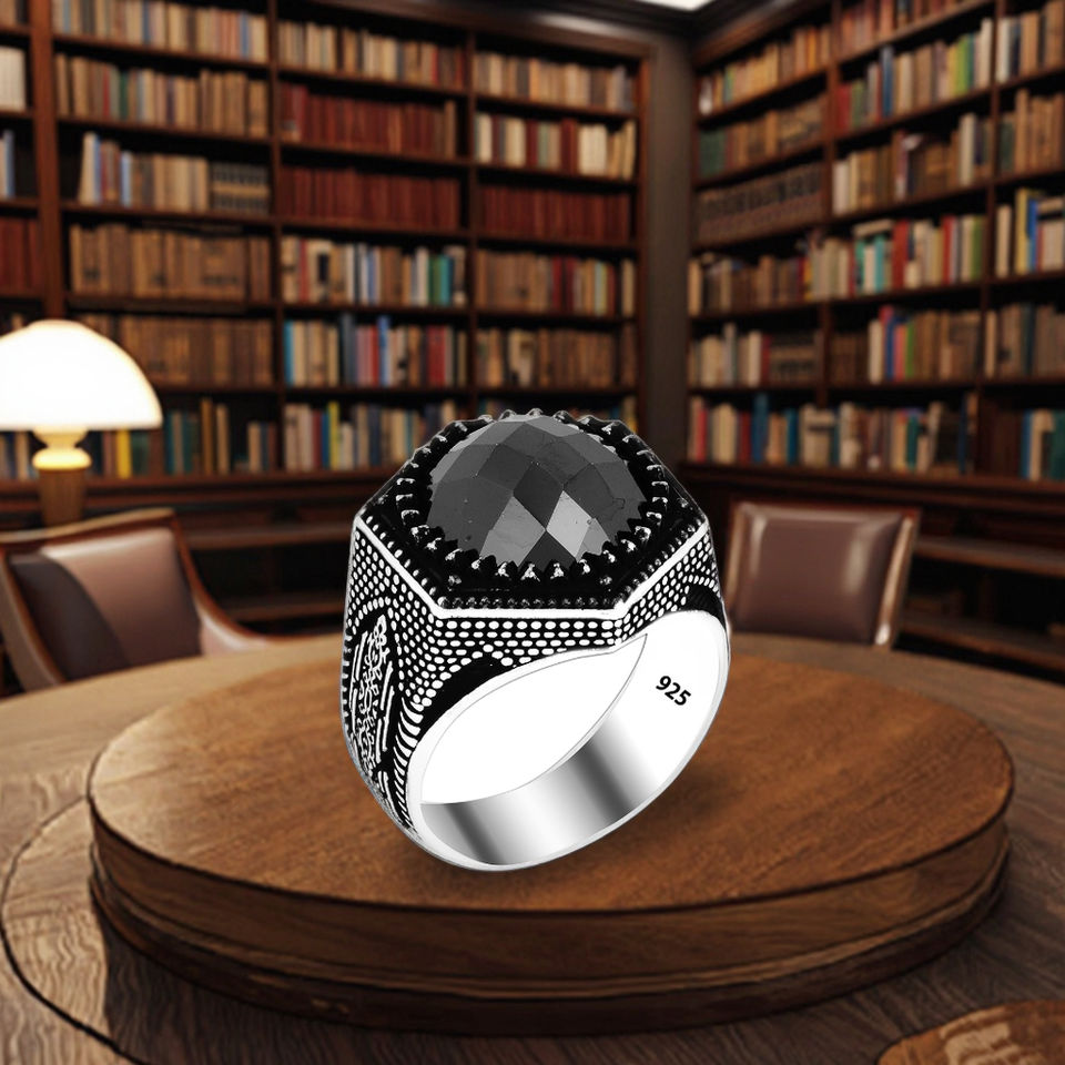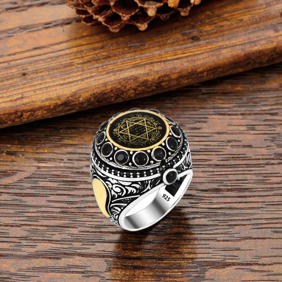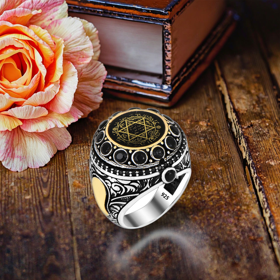 925 Sterling Silver Solomon Hard Seal Ring for Men Large Gemstone with Vintage Style Free Logo Engagement Suitable