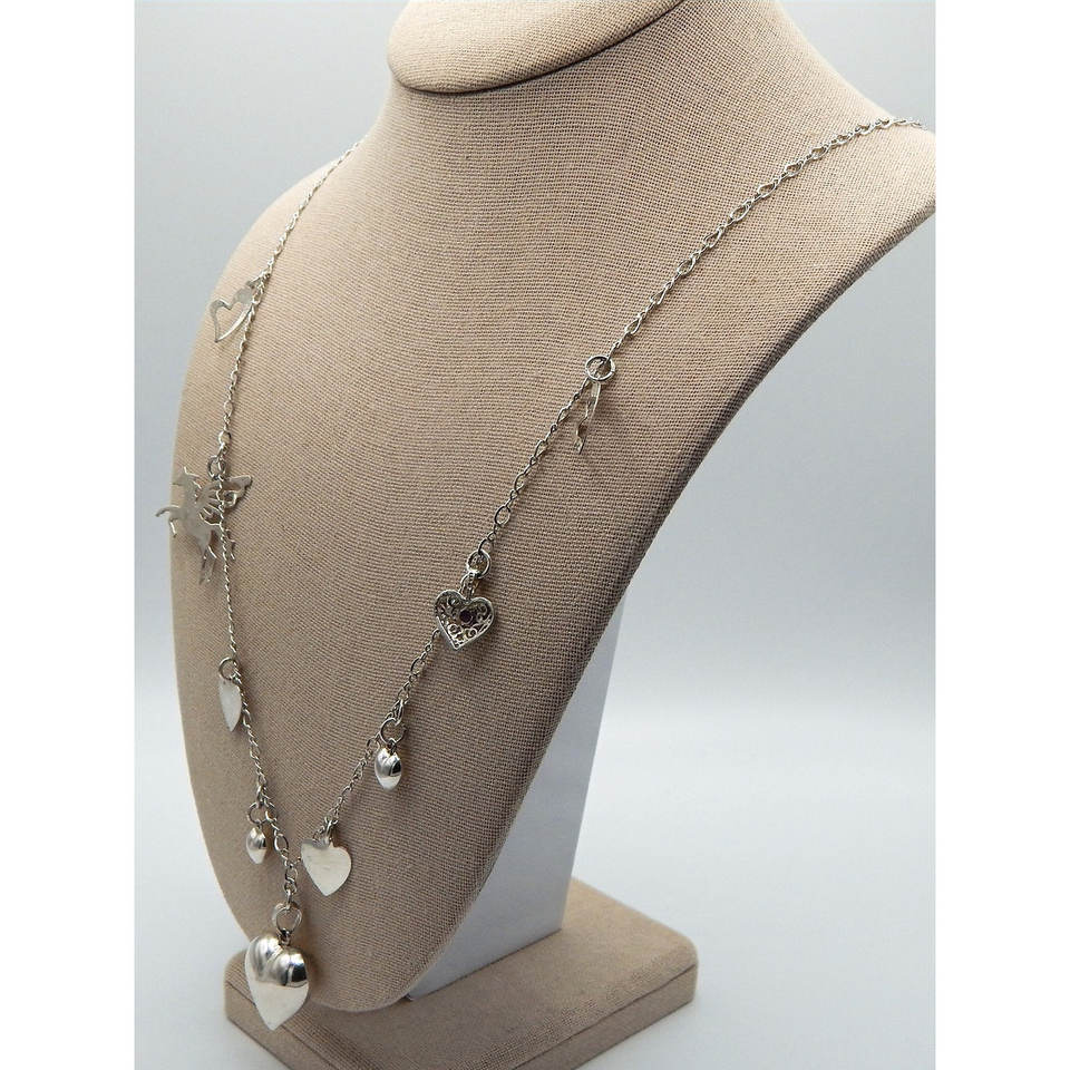 Catena a maglie attorcigliate, ciondoli assortiti, ciondolo a cuore, pietra di ametista