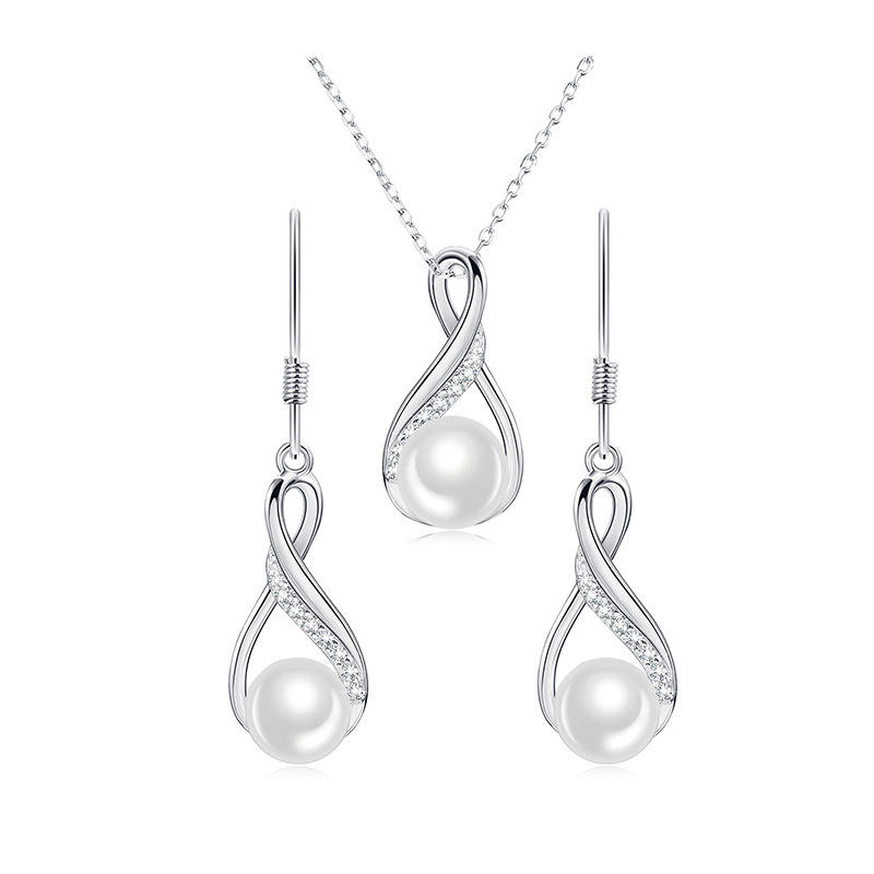 925 Sterling Silver Women's Freshwater Pearl Earring and Necklace Set for Mother's Day or Birthday Water Drop Stud Earrings