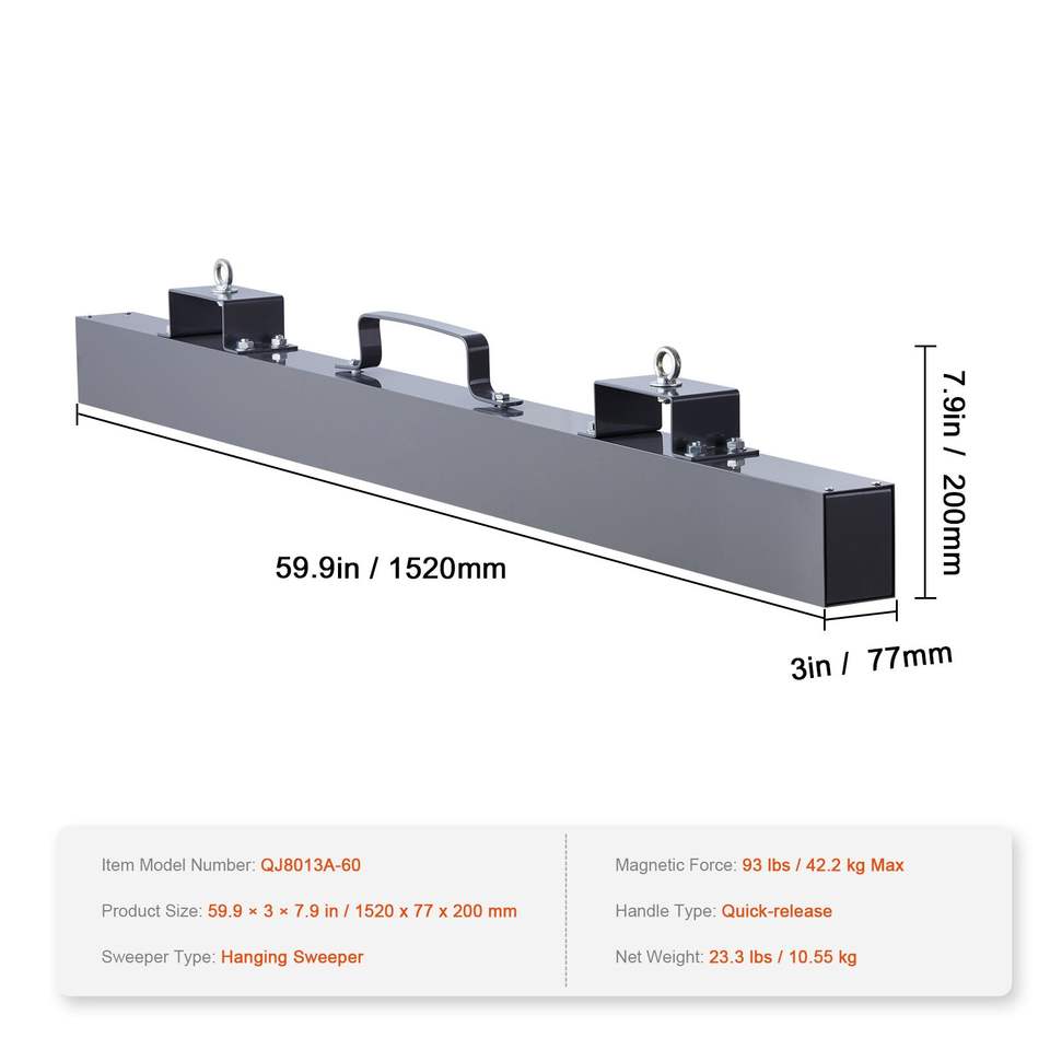 93 Lbs Hang-Type Nail Magnetic Separator Industrial-Grade Steel Material Hanging Magnetic Forklift Sweeper Pickup Tool