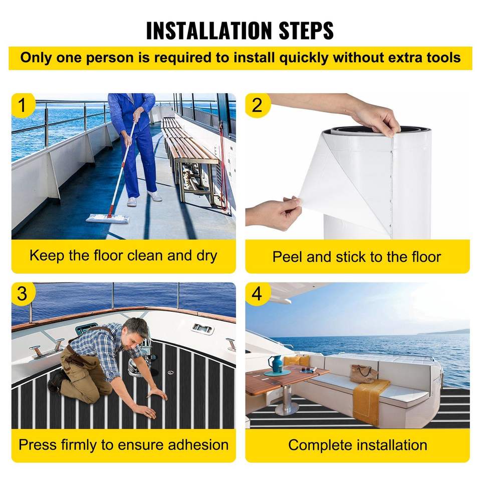 Foglio di Rivestimento per Barche in Schiuma EVA Effetto Teak Moderno 94,5 X 47,2 Pollici, Spessore 5MM, Antiscivolo, Autoadesivo per Yacht, Camper, Piscina