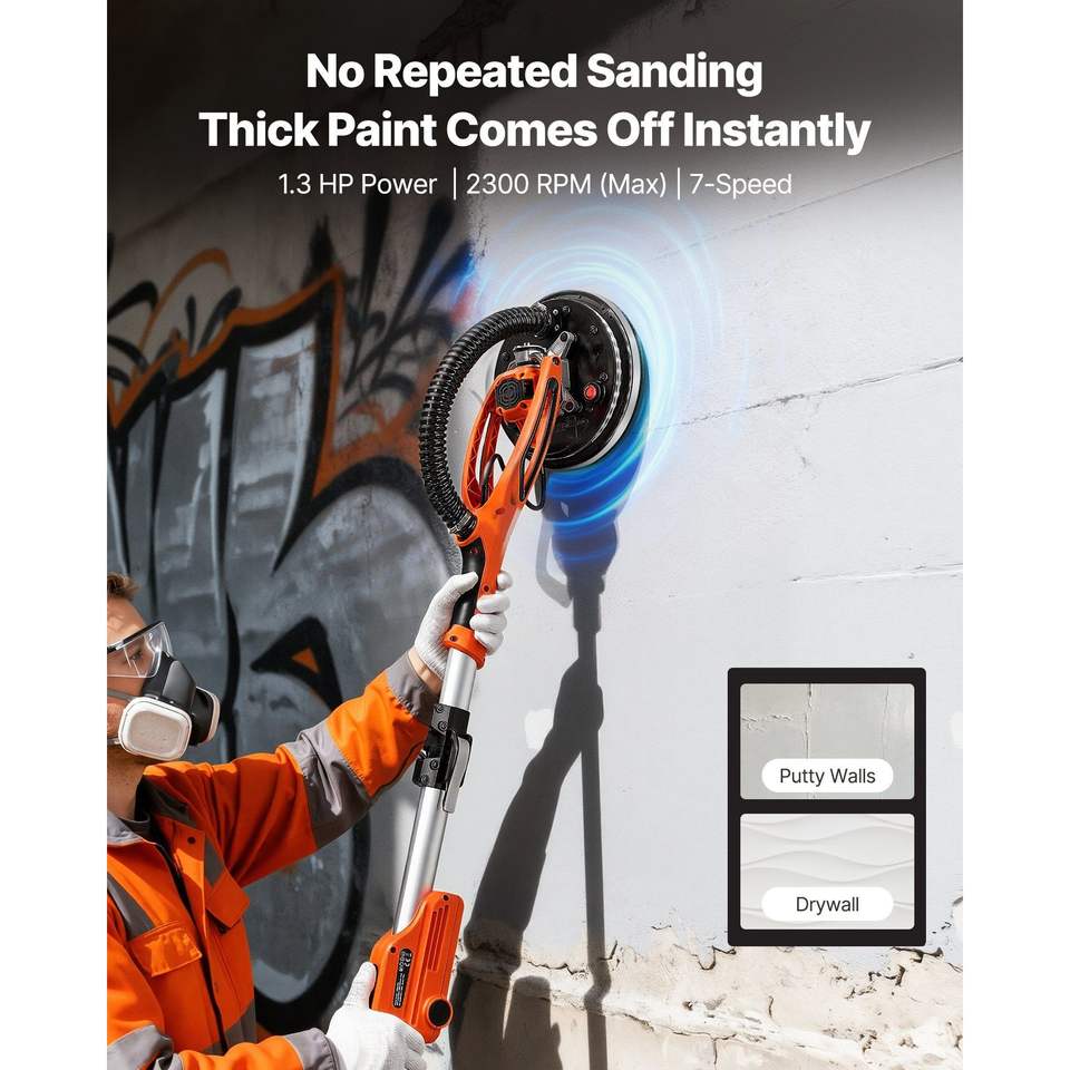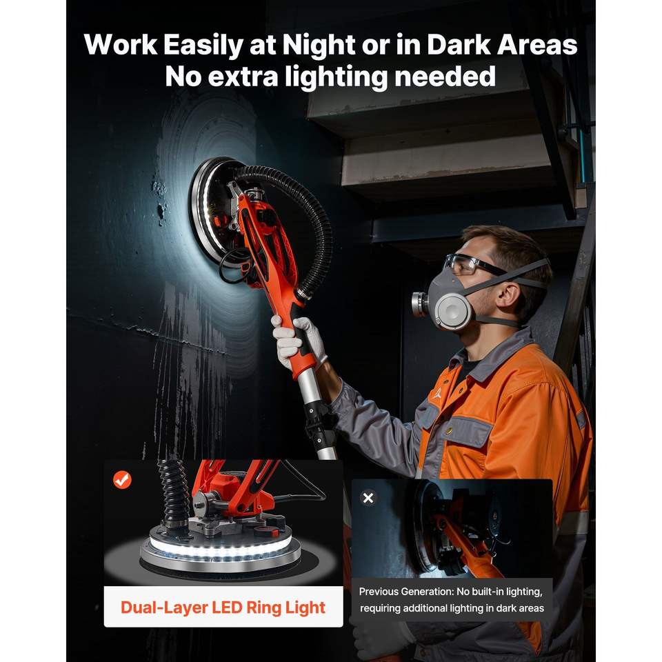 Levigatrice Elettrica per Cartongesso 950W, 7 Velocità Variabili 1000-2300 RPM, Strumento LED a Doppio Disco per Rimozione Controsoffitti in Cartongesso, 7 Velocità Variabili