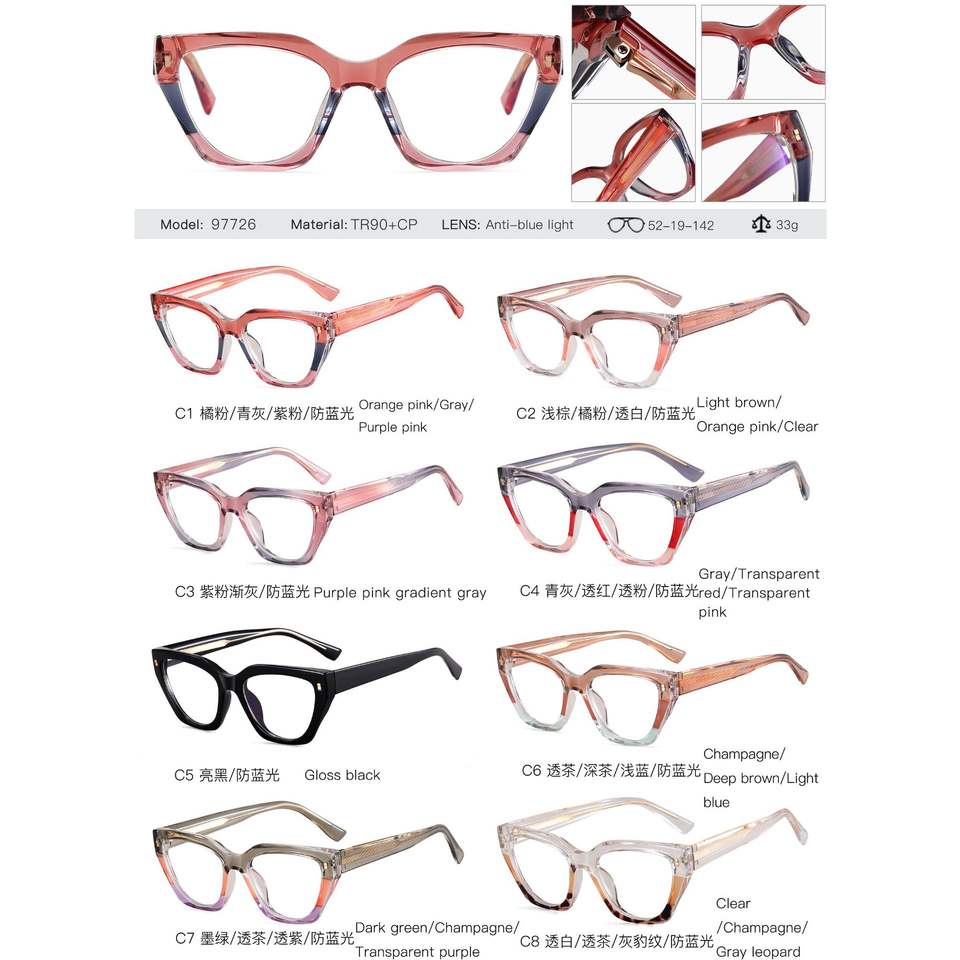 97726 ELEGANTE Montatura per Occhiali a Telaio Completo Sottile con Lenti Sfumate Anti-luce Blu Protezione Occhi Donna Commercio Estero Disponibile in Magazzino