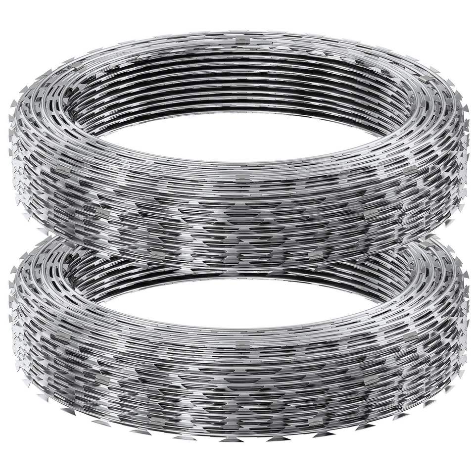 Filo Spinato Razor da 98 Piedi, 2 Rotoli, Doppia Spirale, Filo Zincato per Recinzioni