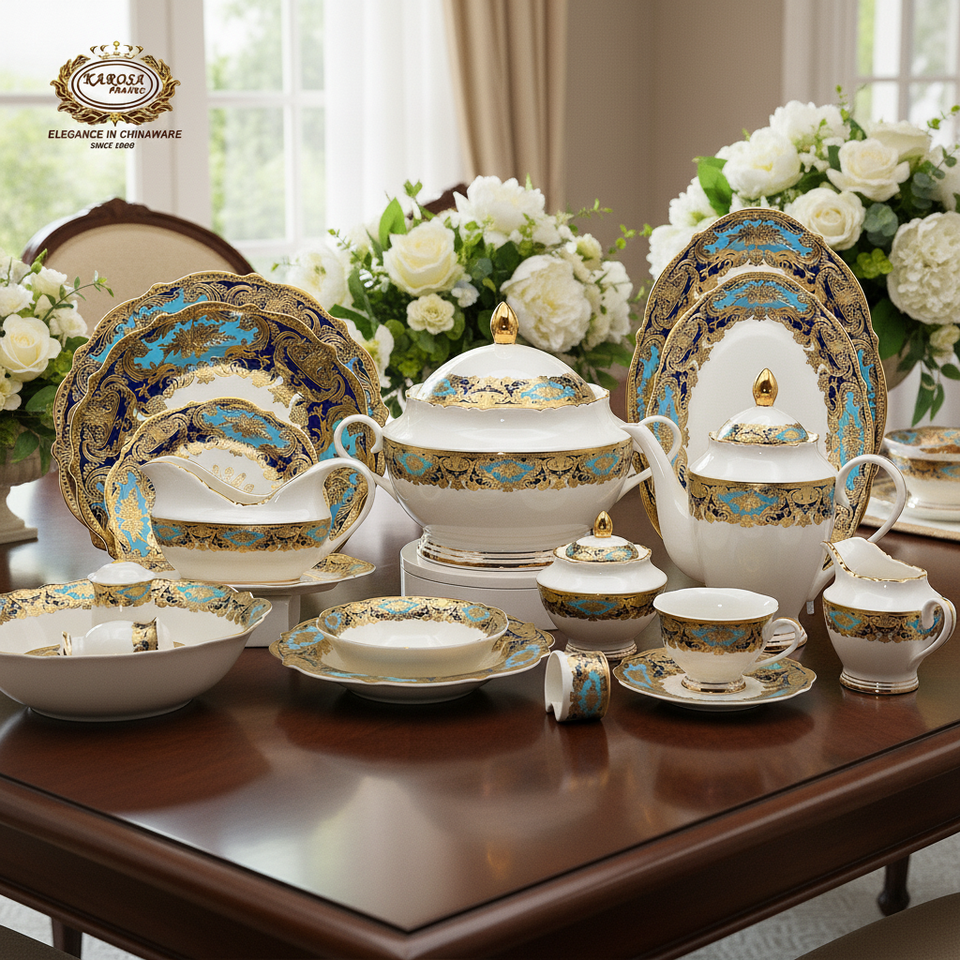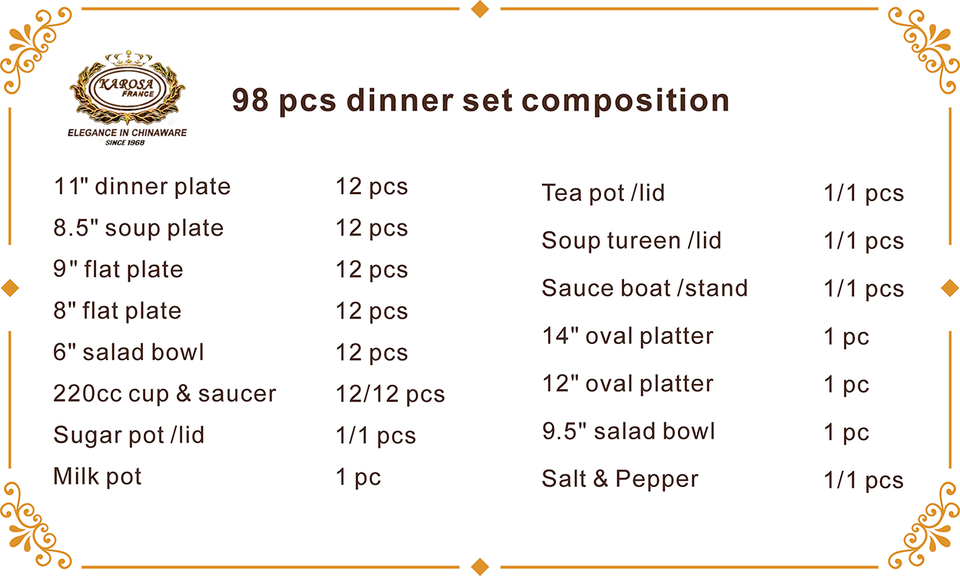 royal style 98 pcs bone china dinner set