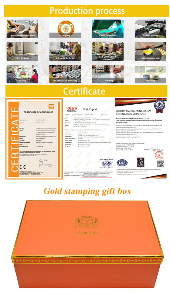 98pcs Karosa Design Bone China Porcelain Golden Decoration Dishes and Plates Wedding Festival Golden Bone China Dinnerware Sets