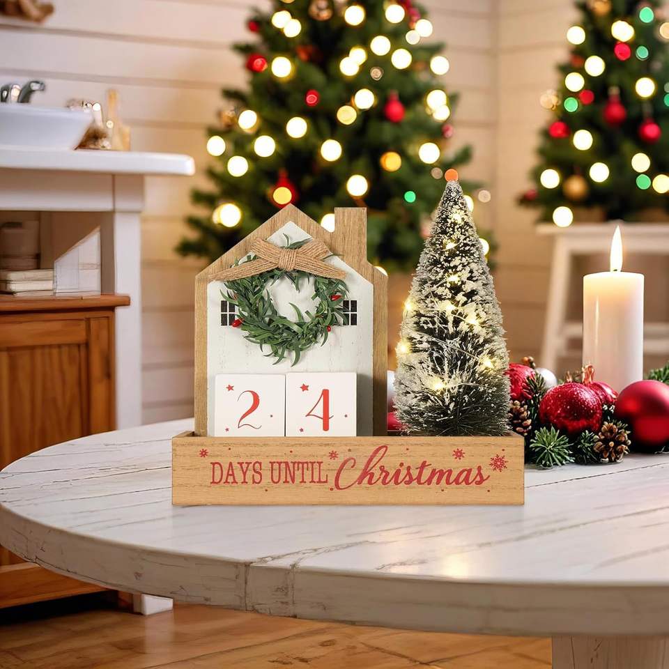 Calendario Natalizio con 99 Giorni Conto alla Rovescia, Albero di Natale Illuminato a LED, Ghirlanda Rustica in Legno da Tavolo, Decorazioni Natalizie con Numeri e Data