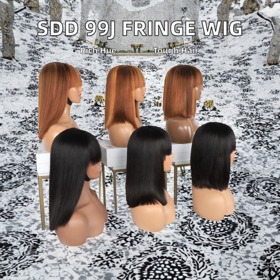 Parrucca corta SDD con frangia in pizzo trasparente per donne nere 99J 12A capelli Remy brasiliani