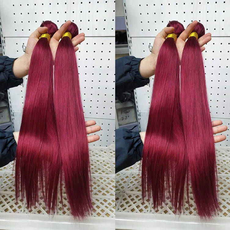 99J borgogna vino rosso dritto onda del corpo crespo ricci cuticola brasiliana allineato vergine grezzo indiano fornitore fascio di capelli umani