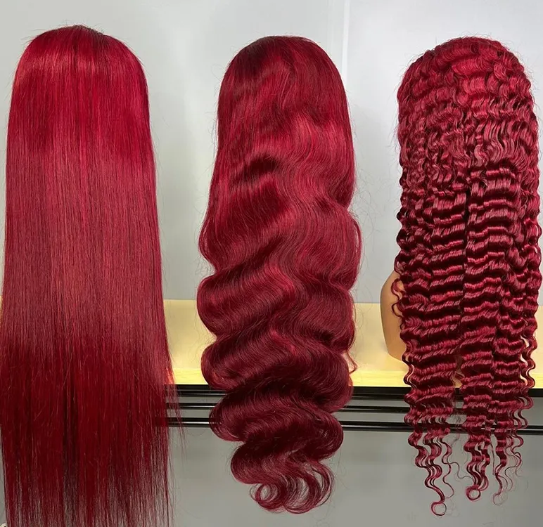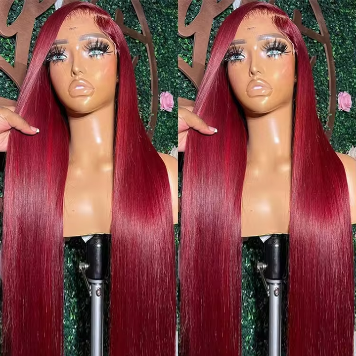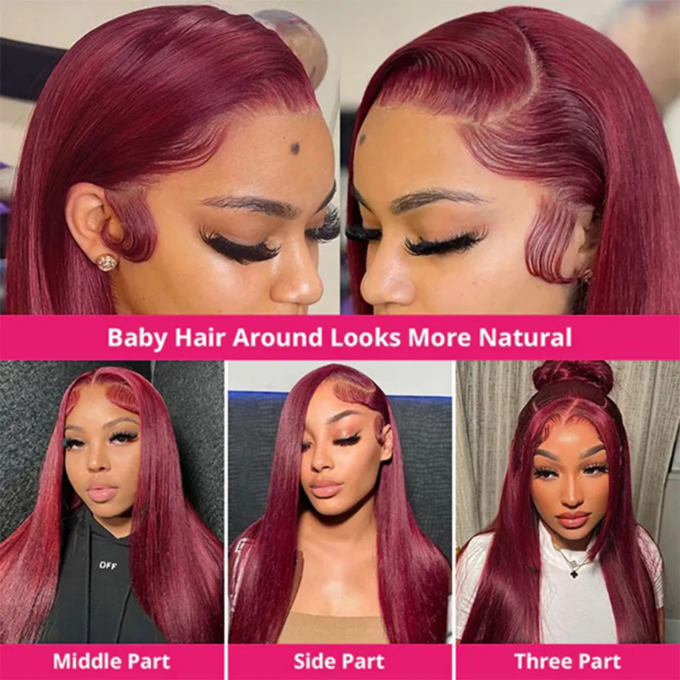 Parrucca frontale in pizzo dritto 99j Pre pizzicata Remy 13x4 in pizzo trasparente anteriore parrucche per capelli umani da donna bordeaux colore 180% densità