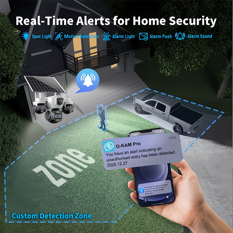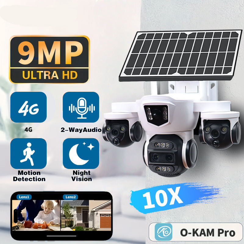 Telecamera PTZ 9MP con Zoom Digitale 10x, Visione Notturna a Colori, App Mobile O-KAM Pro, Trasmissione in Diretta, AOV 4G CE Rohs per Esterni e Casa