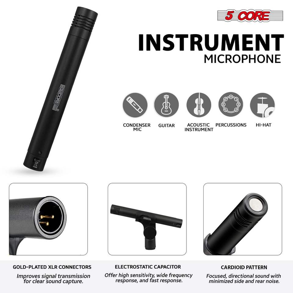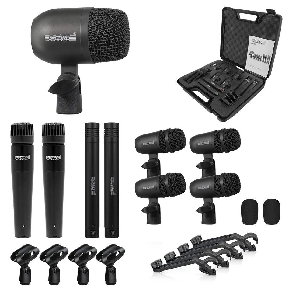 Kit Microfoni per Batteria 9 Pezzi in Metallo, Set Completo per Tom/Rullante e Piatti, Cablati, per Batteristi