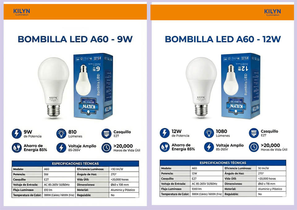 KILYN 9W LED Bulb 2700K/4100K/6000K CCT E27 Base PC Material AC SMD Chip ETL Certified Residential CRI80