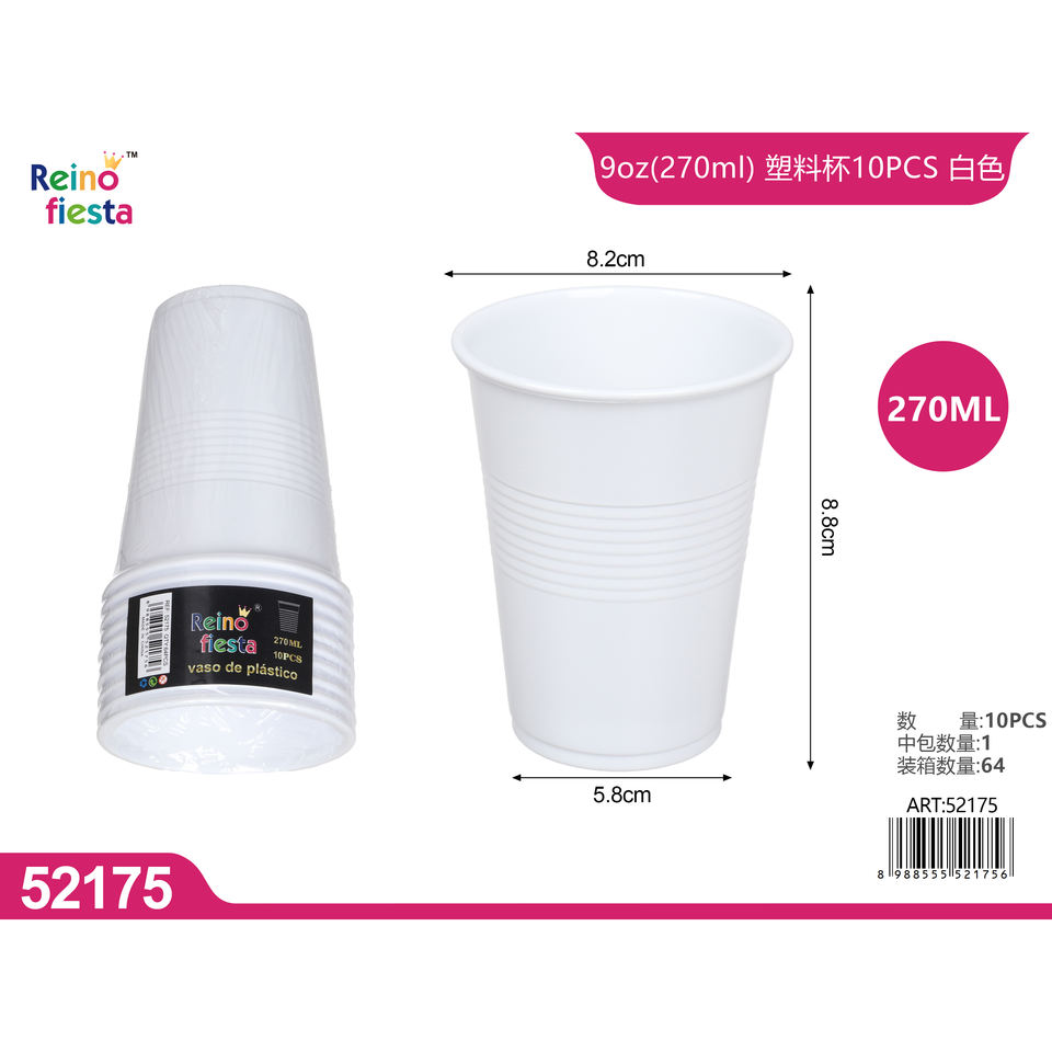 9oz 270ml White Plastic Disposable Cups 10PCS Set for Parties and Events Bulk Supply