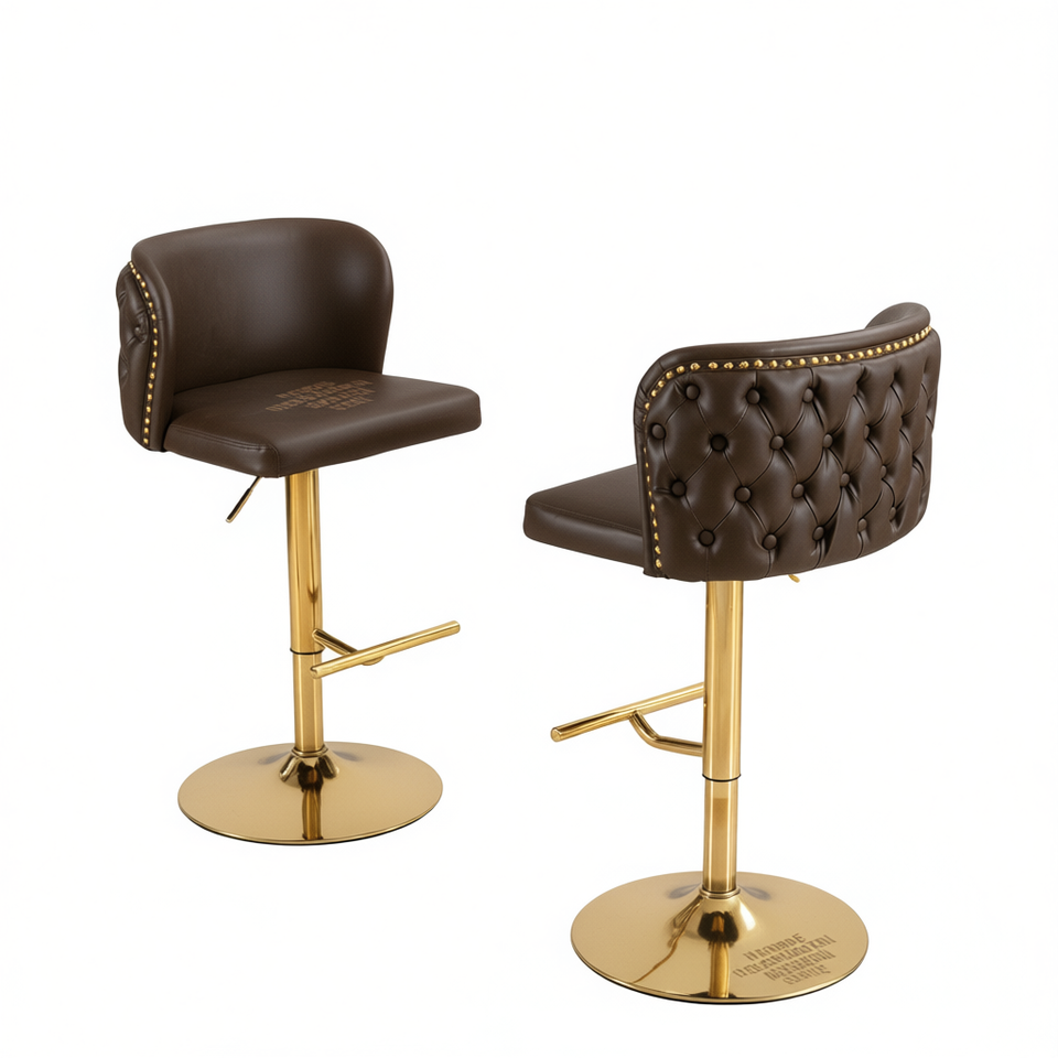 Set di 2 sgabelli da bar moderni in similpelle marrone, girevoli, con altezza regolabile e schienale trapuntato, per casa o pub.