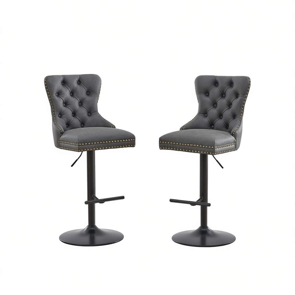 Sgabelli da Bar Girevoli in Stile Retrò, Altezza Regolabile 26-33 Pollici, Schienale Trapuntato, Base in Metallo, Seduta Confortevole