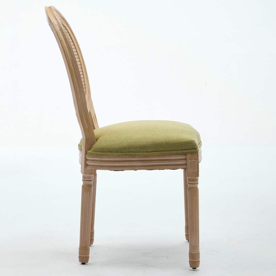 A&A Furniture Set 2 Antique Painting Linen Fabric Rattan Back Dining Chairs French Style Solid Wood Frame Olive-Green