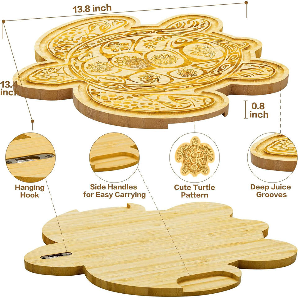 Tagliere in bambù con manico e scanalatura profonda per salse, ideale per grigliare tartarughe in cucina, un must per mamme e nonne