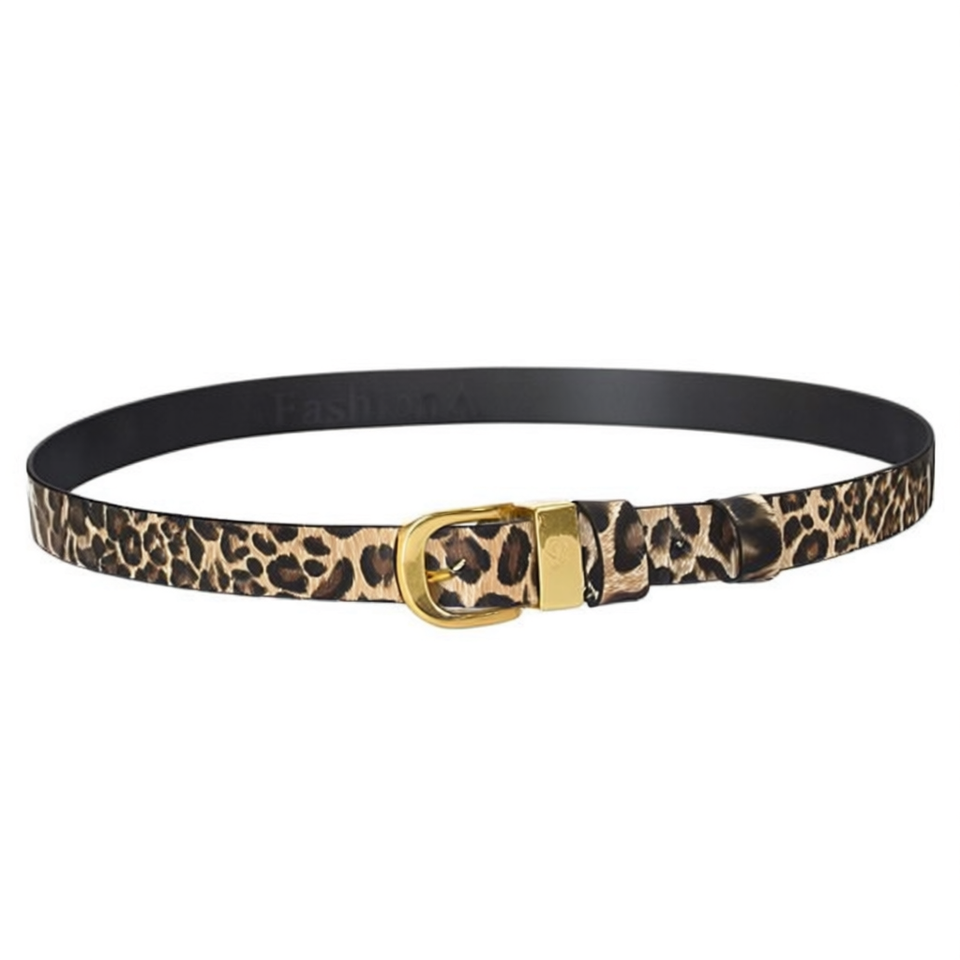 Cintura alla Moda con Stampa Leopardata 2,5 Cm, Cintura da Donna con Anello a D e Fibbia in Rame, Cintura Casual in Tessuto di Poliestere